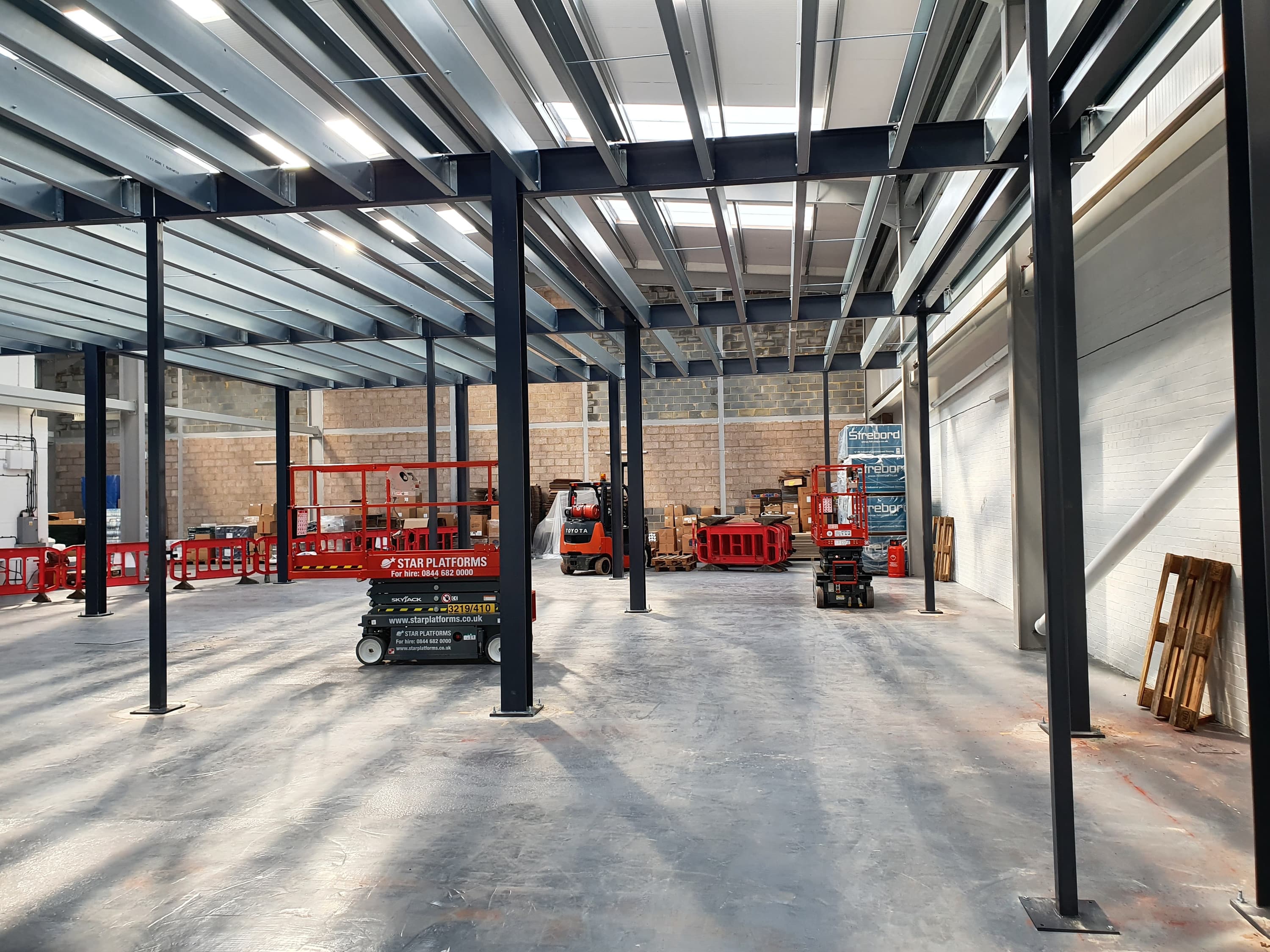 The first stage was to install a mezzanine floor and during the planning stage it became apparent that the existing flooring of the warehouse was a real mixture of building debris and the foundations of an old outbuilding meaning that potentially it was not stable enough for a mezzanine floor to be fitted without additional support.