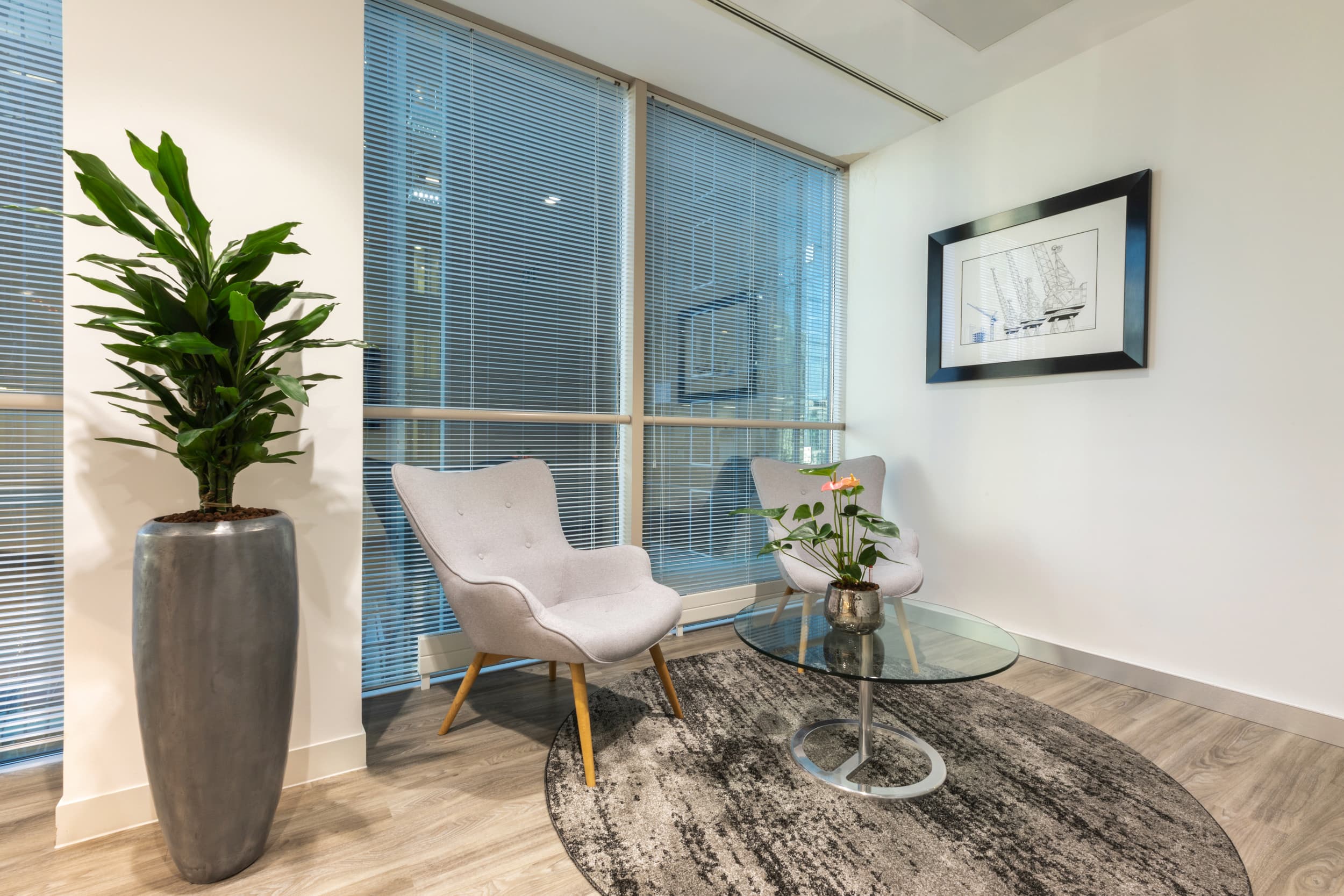 Finally, we commissioned a collection of line drawings of local Docklands artwork from Lis Watkins, which were framed and hung along one wall and a city scape manifestation applied to the glass partitions for added privacy.