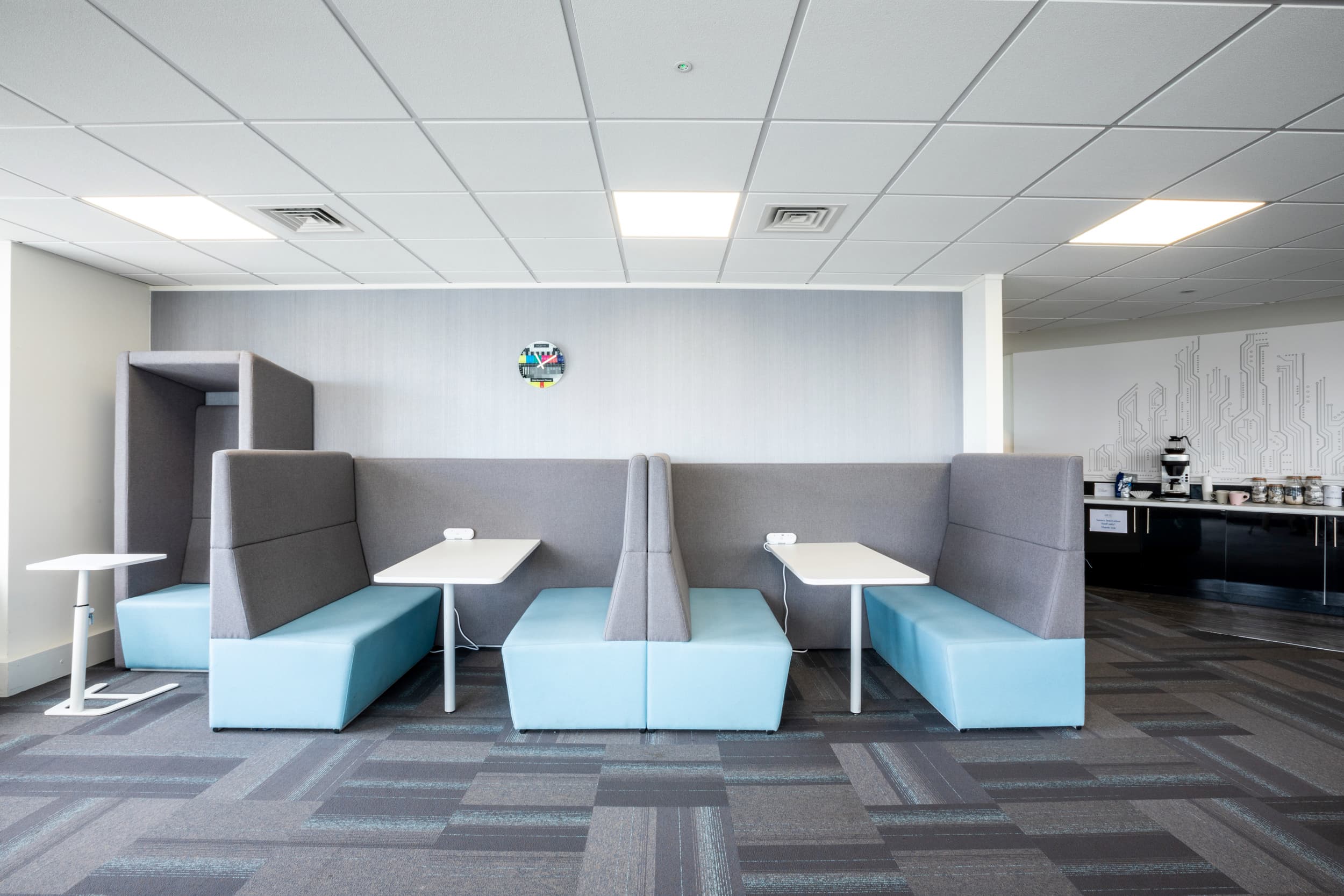 With these new elements, as well as re-designing the layout for the existing bistro tables, we were able to create a new flexible, calm workspace that has been very well accepted by the Sussex Innovation Croydon members.